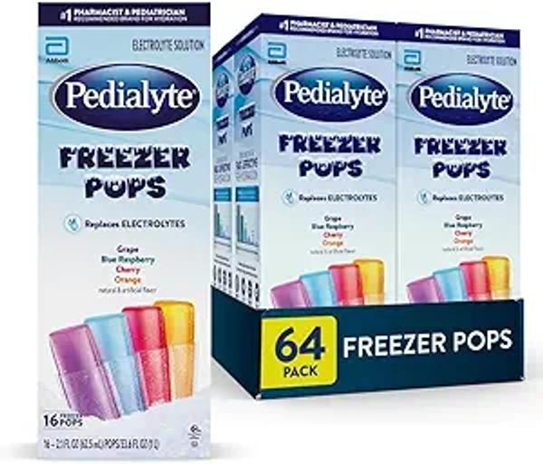 Pedialyte Electrolyte Solution Freezer Pops, Hydration Variety Pack— Grape, Blue Raspberry, Cherry, Orange, Pack of 64