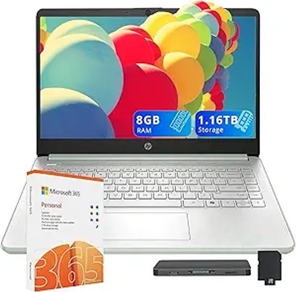 HP Stream 14" HD Laptop for Student & Business, Intel Processor N150, 8GB RAM, 1.16TB Storage (128GB UFS+1TB Docking Station Set), Intel Graphics, 1 Year Office 365, Copilot, Wi-Fi 6, Win 11 S, Green